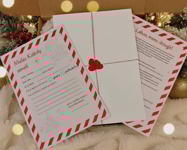 Kalėdų senelio laiškas su smagia misija, kuri veda per visą kūrybos procesą